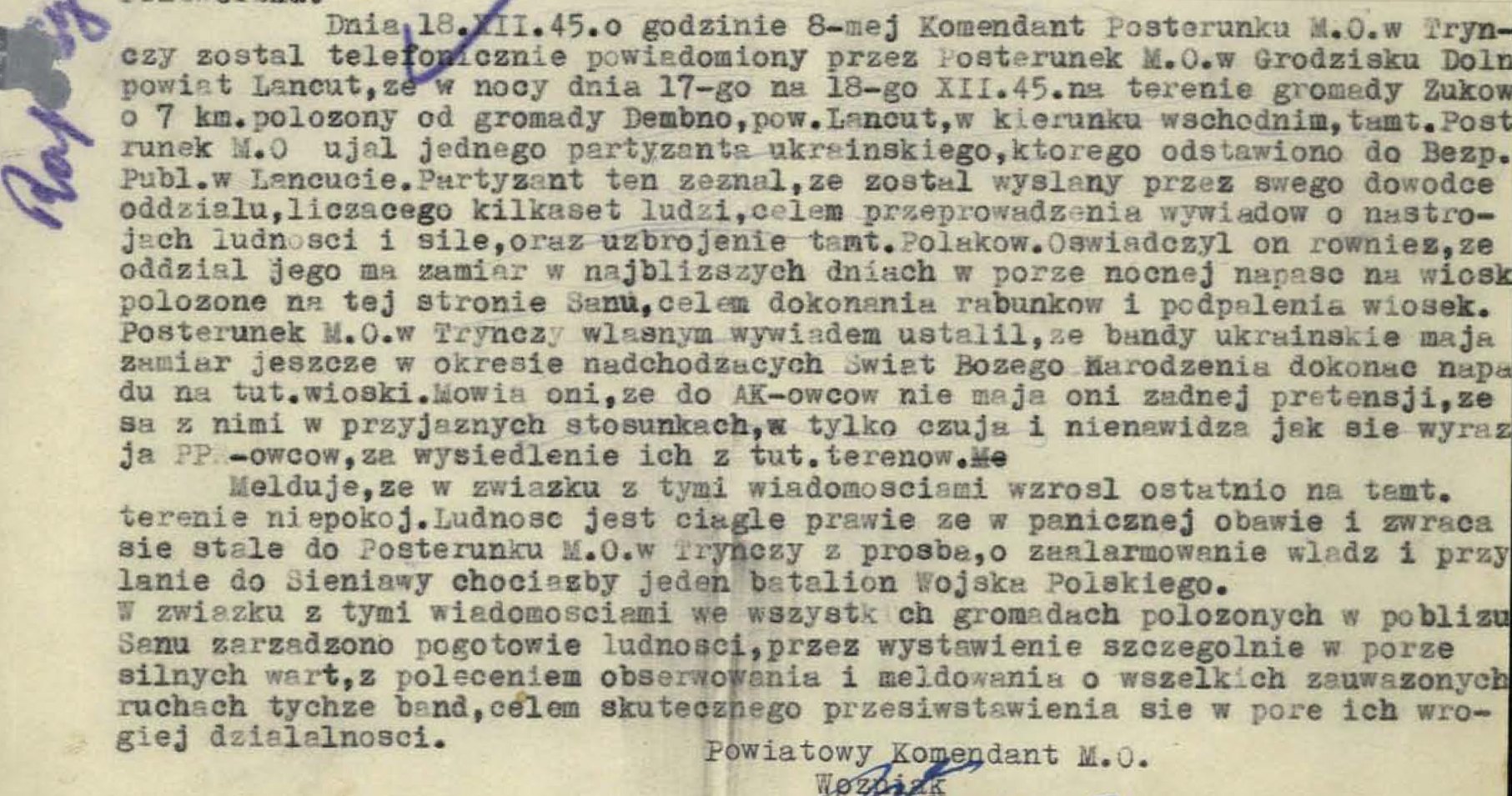 Wojna się skończyła, jednak spokoju w tych okolicach nie było. W nocy z 5 na 6 październiku 1945 r. UPA spaliła m.in. Cieplice, Rudkę i Piskorowice. Część ludności z tych wsi schroniła się w Dębnie. Napięcie wzrosło, gdy w nocy z 17 na 18 grudnia milicja zatrzymała w Rzuchowie Ukraińca, członka UPA, który zeznał, że jego kilkusetosobowy odział, planuje atak na polskie wsie położone po zachodniej stronie Sanu.